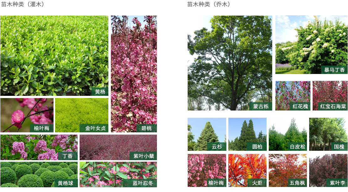 苗圃基地、苗木種類(地被)、苗木種類(喬木)、苗木種類(灌木)